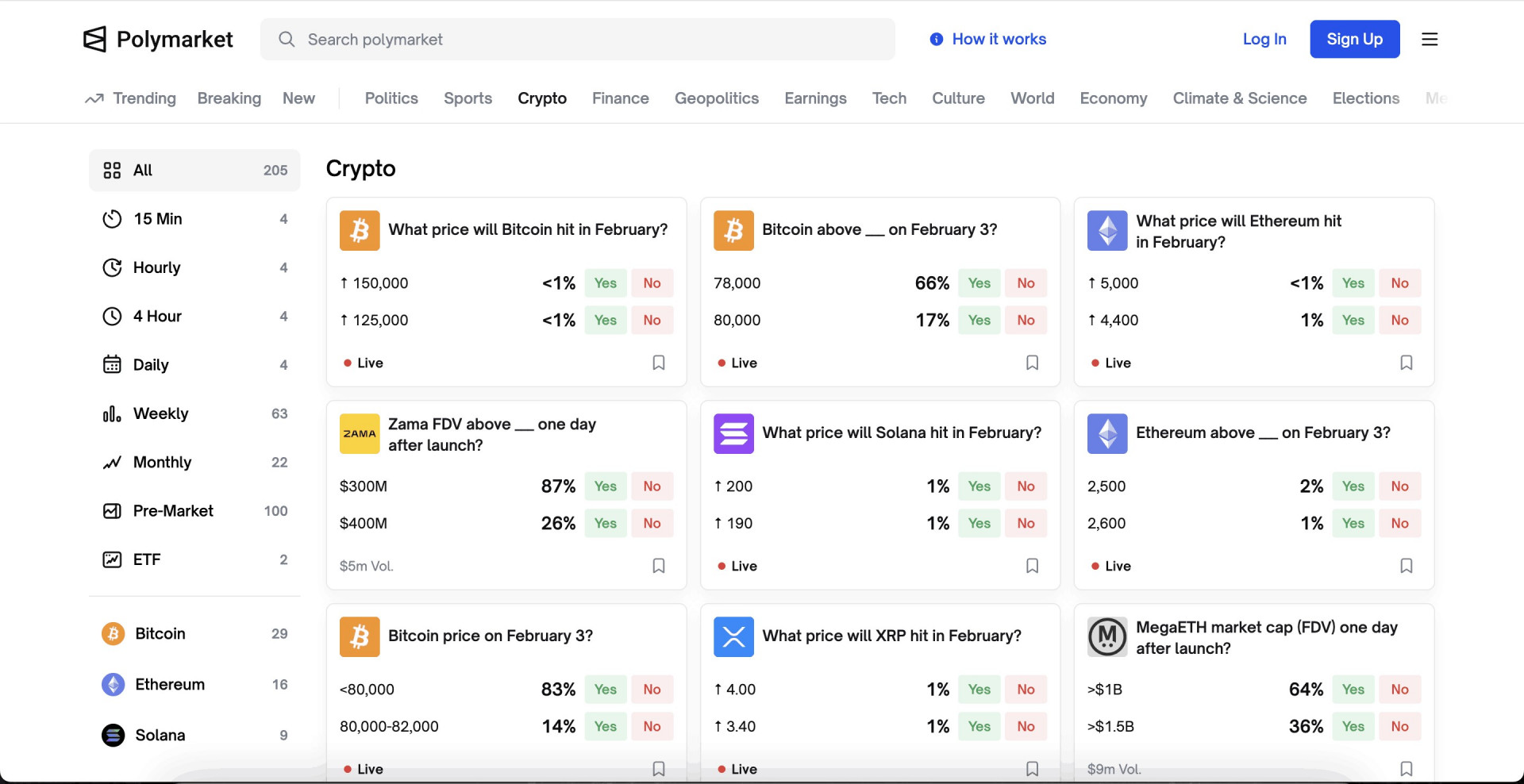 La struttura base di Polymarket è, a prima vista, familiare: sembra un mix tra l’homepage di un giornale, il feed di un social e una dashboard di trading online. Si scorrono categorie come “Politics”, “World”, “Crypto” e si vedono titoli, numeri, variazioni. Ma è qui che si manifesta una prima differenza: ogni “notizia”, in realtà, è una scommessa. Tutto ruota intorno a domande binarie: accadrà o non accadrà? Entro una certa data o no?