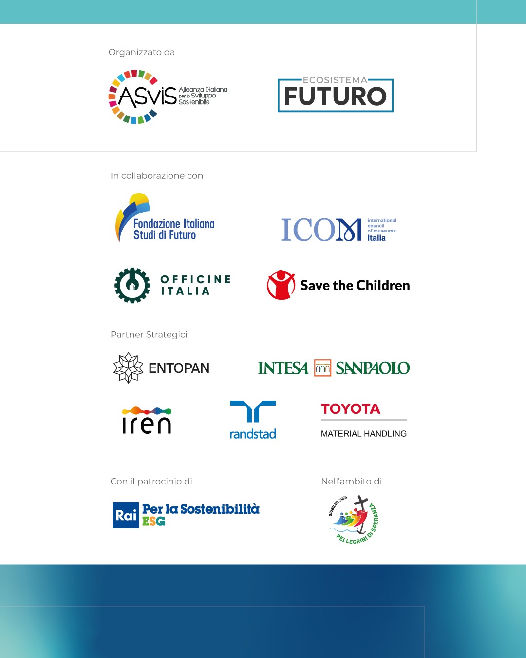 In occasione dell'Anno giubilare della speranza e della Giornata mondiale dei futuri promossa dall’Unesco, il 2 dicembre, presso l'Auditorium dell'Ara pacis a Roma, si è svolto l'evento "Un patto sul futuro, anche nell’interesse delle future generazioni". Organizzato dall'ASviS, in collaborazione con Icom Italia, Officine Italia, Save The Children e Fondazione Italiana per gli Studi sul Futuro, nell'ambito dell’iniziativa Ecosistema Futuro che è stata presentata per l'occasione, la giornata è nata con l'obiettivo di posizionare a livello istituzionale e mediatico il tema del futuro, o meglio, dei futuri possibili.