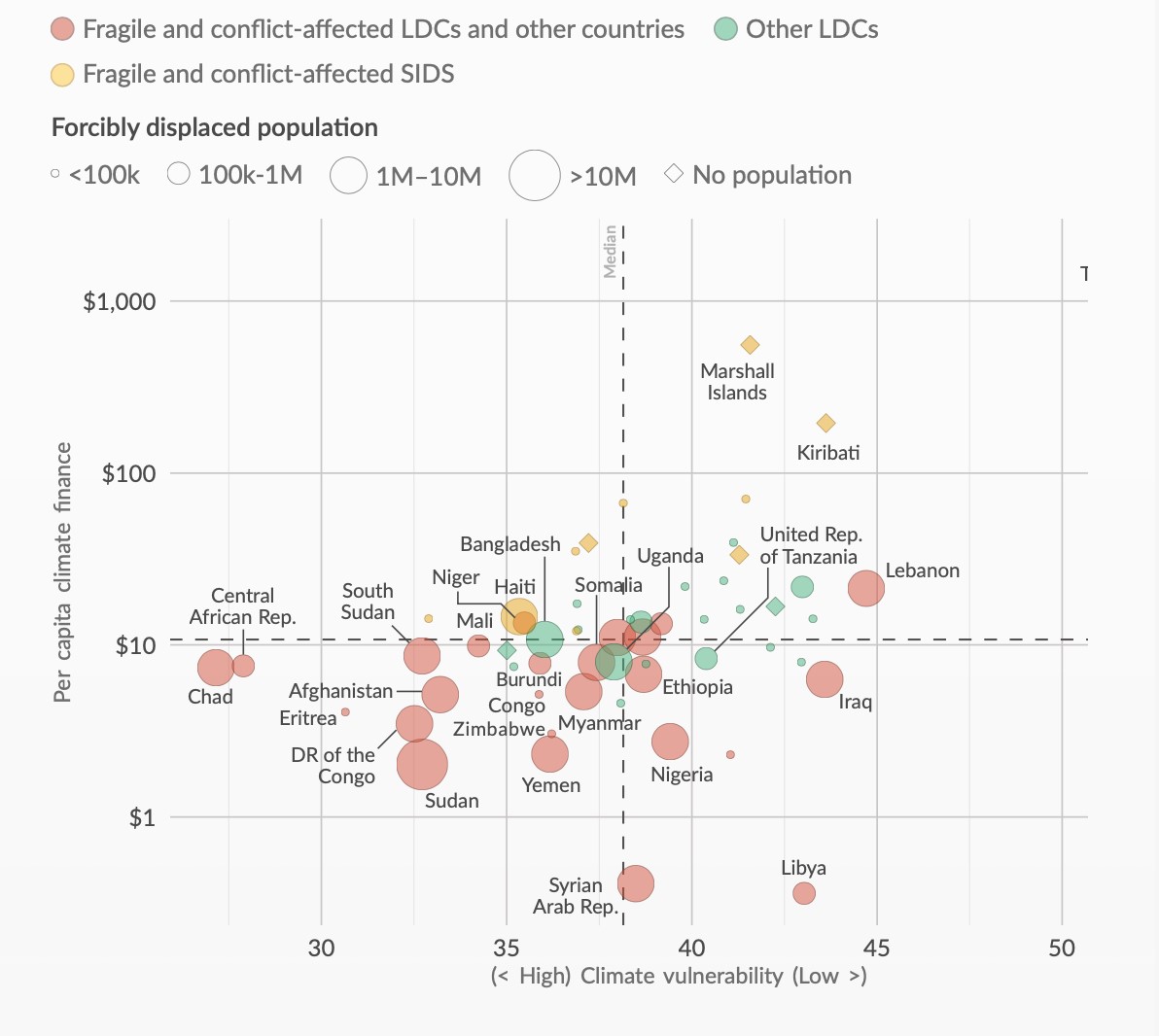 Figura 2. Rapporto tra Paesi esposti a confliti e finanziamenti ricevuti