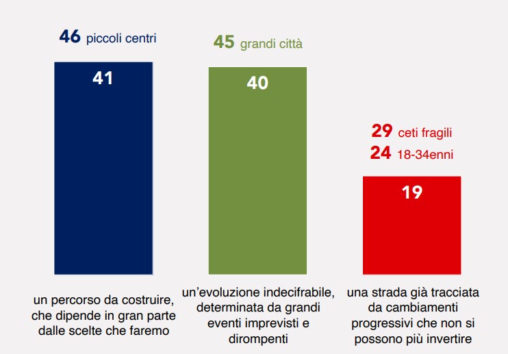 Il sondaggio fornisce una mappa delle priorità: per gli italiani la tecnologia è vista come leva principale ma non elimina la richiesta di intervento pubblico. Preoccupano gli scenari ecologici e la capacità collettiva di indirizzare il futuro partendo dal basso è presente ma non prevalente. Un messaggio importante per i decisori politici che sono chiamati ad articolare le misure di governo attraverso strategie di coinvolgimento e comunicazione che riducano il senso di impotenza.