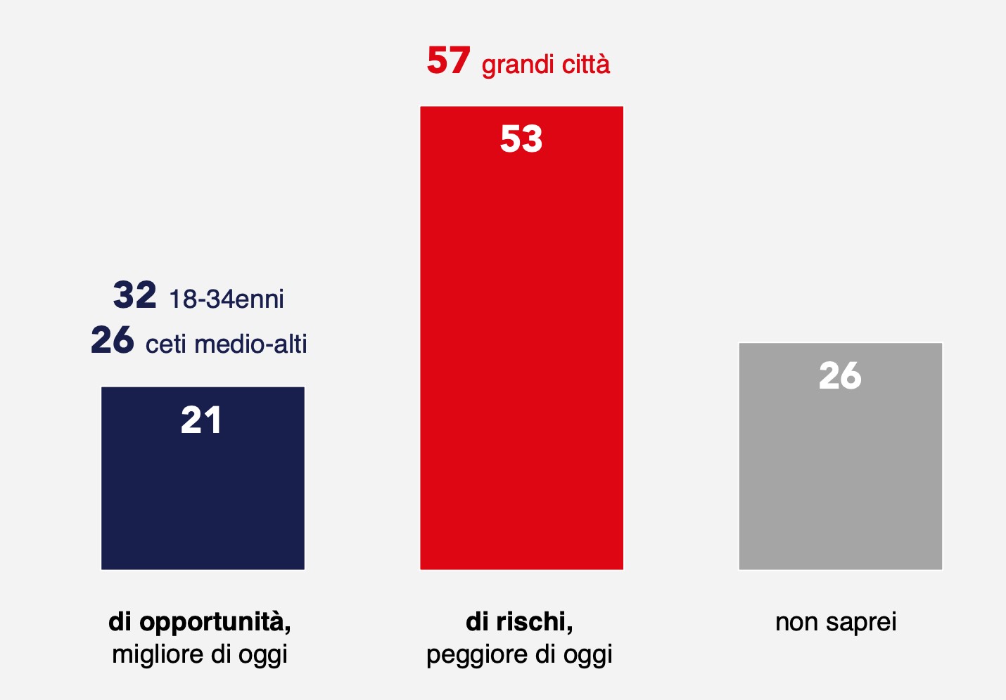 Come sarà il 2050? Tra gli italiani prevale il pessimismo, giovani più fiduciosi